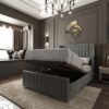 Product description: The Imperial Winged Bed offers both striking design and discreet storage. Wrapped in elegant grey naple velvet, it exudes a contemporary charm that complements evolving interior trends. Its neutral tones make it a versatile addition to any home, adding a touch of luxury to the master bedroom. The bed features a beautifully detailed, winged headboard that adds character and sophistication.